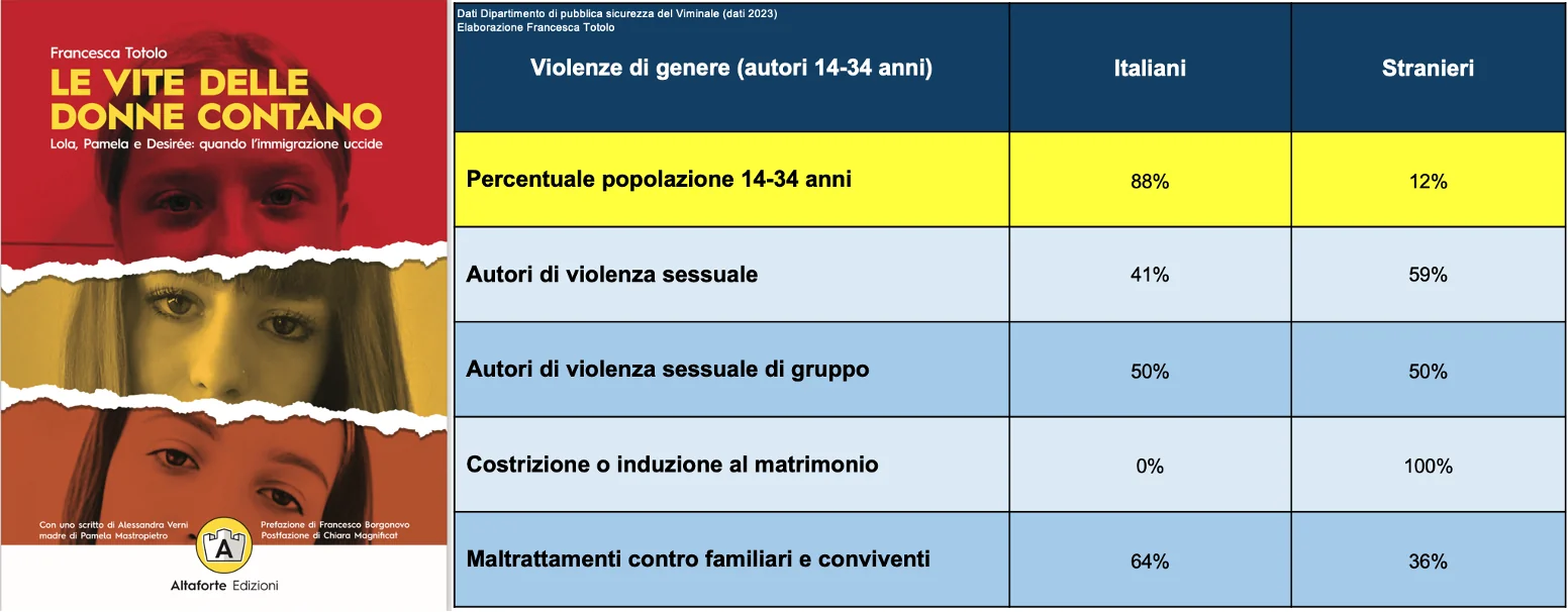 Nel libro "Le vite delle donne contano", ho già documentato le violenze contro le donne degli stranieri. In Italia, esplodono i casi di stupro commessi da giovani immigrati che superano quelli dei coetanei italiani.